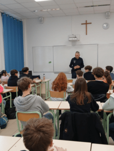 Sensibiliser les élèves de 3ᵉ aux conduites à risque. Aujourd’hui, la police nationale est intervenue au Collège Externat des Enfants Nantais pour sensibiliser les élèves