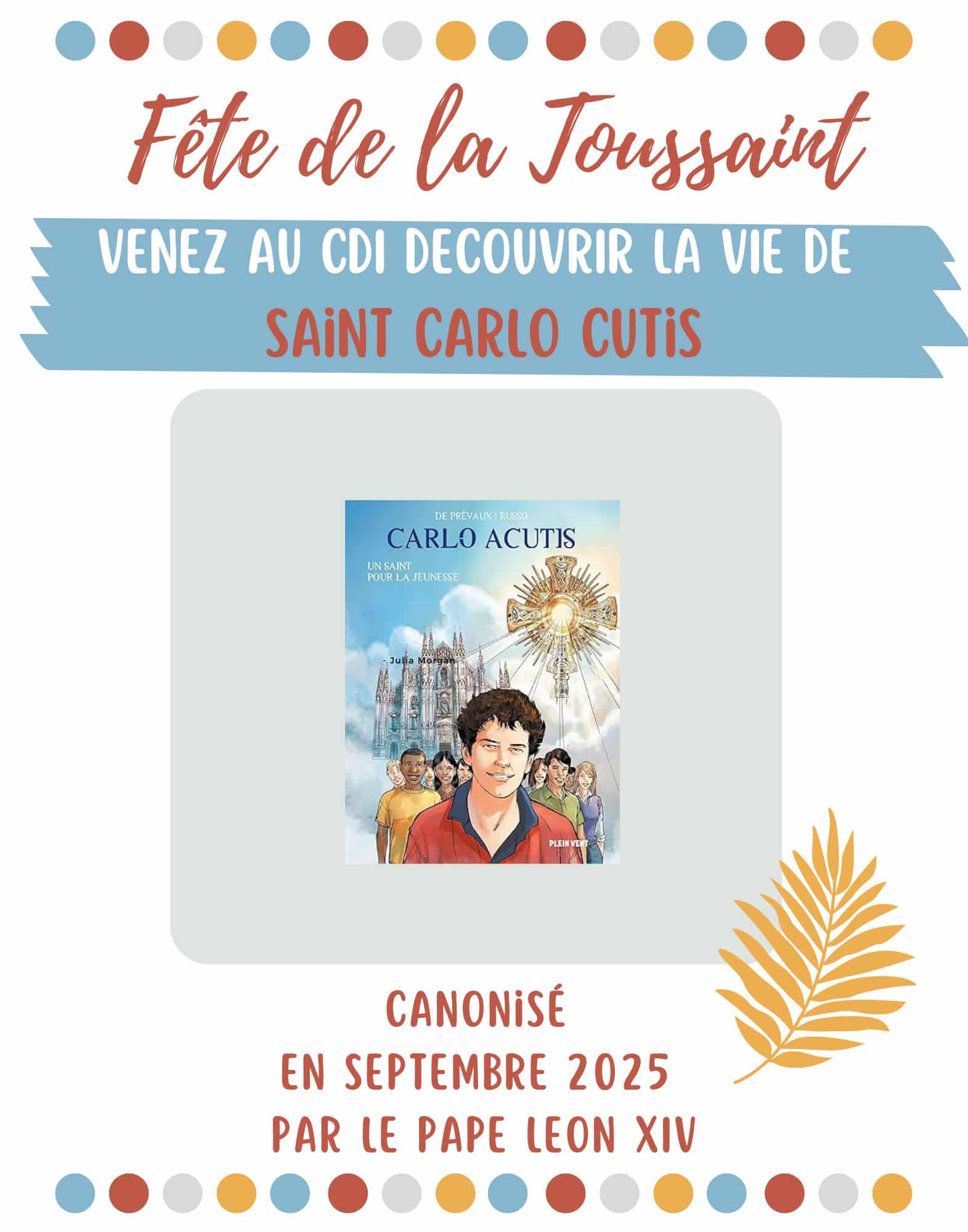 A la découverte de SAINT CARLO ACUTIS A l’approche de la fête de la Toussaint, tous les élèves de Chavagnes ont été invité à découvrir