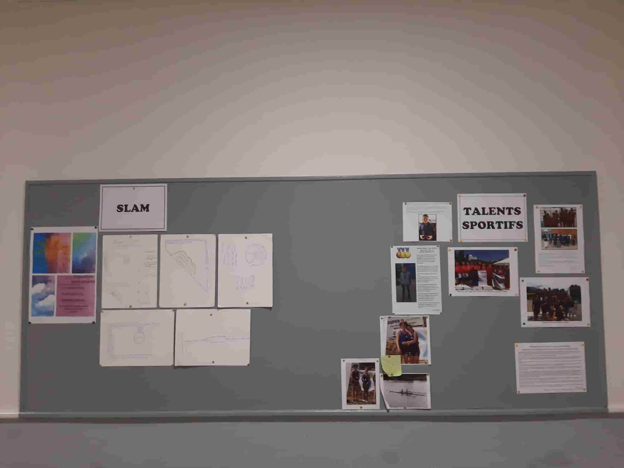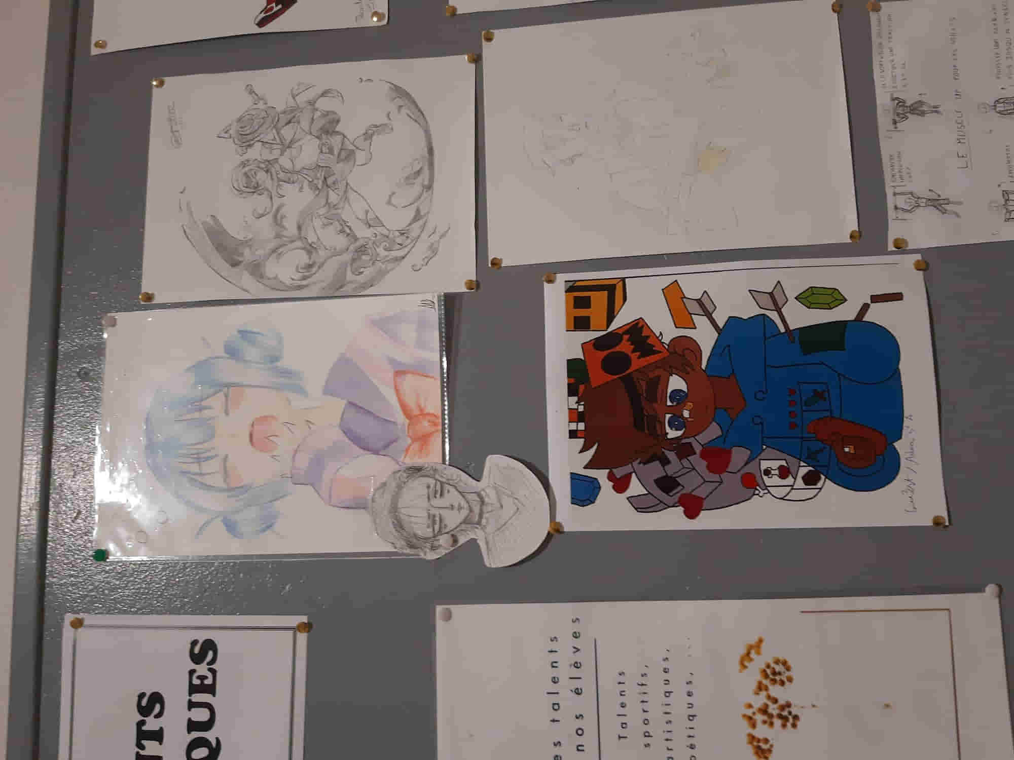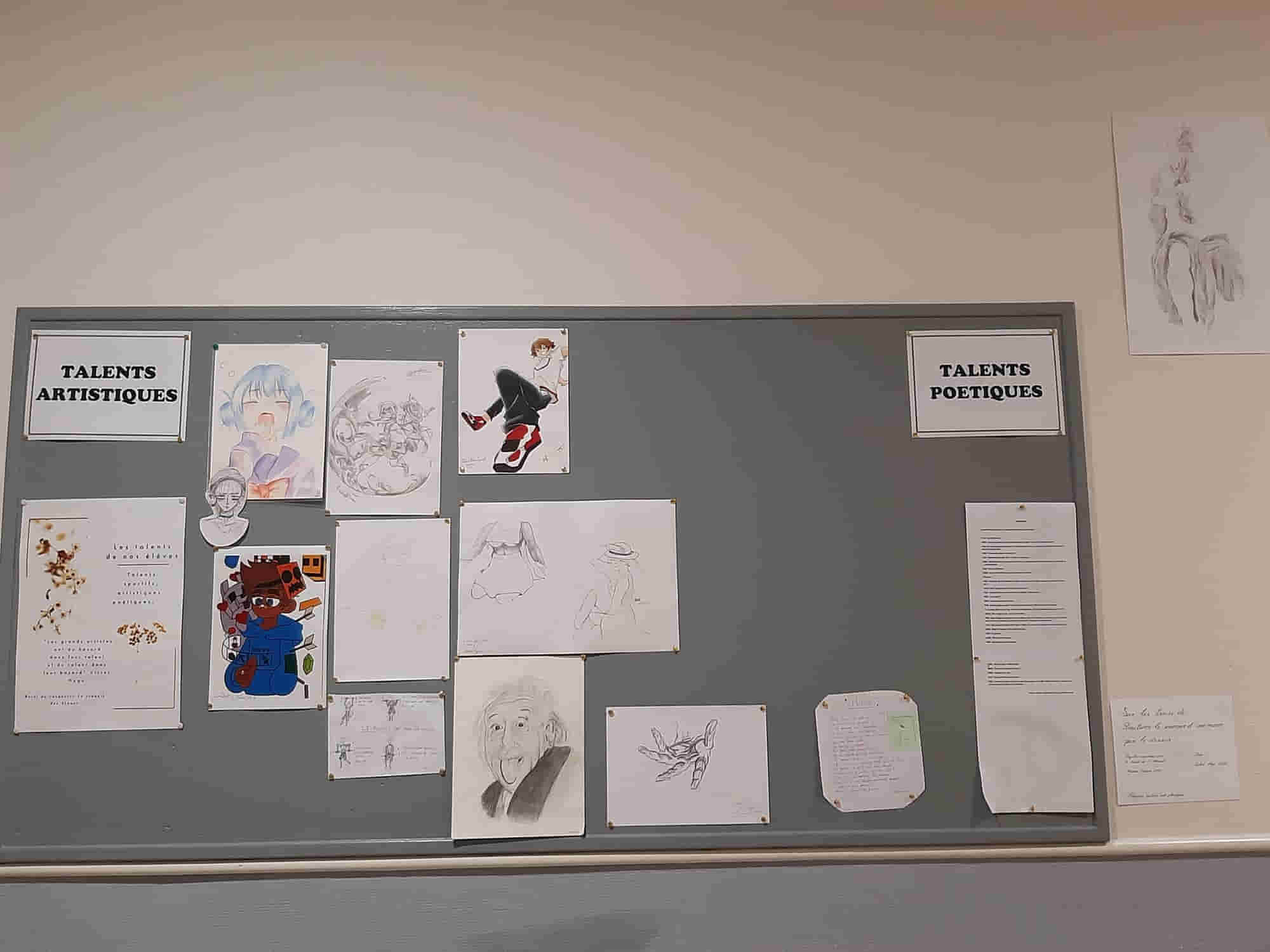 Nos élèves talentueux peuvent désormais afficher leurs œuvres, dans le couloir menant au CDI. Dessins, poèmes, peintures, textes, photographies et exploits sportifs : une exposition permanente n’attend plus que les travaux de nos élèves !