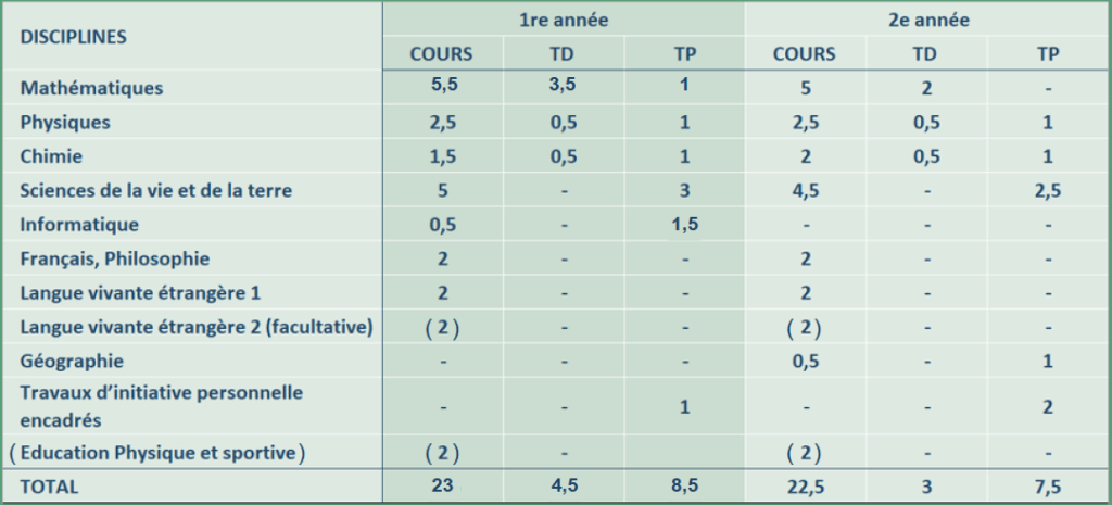 En deux ans, elle prépare les étudiants à intégrer les Ecoles Nationales Vétérinaires, des écoles d’ingénieurs, reconnues par l’État, en agronomie, en géosciences et dans les domaines du vivant et délivrant le grade de master.